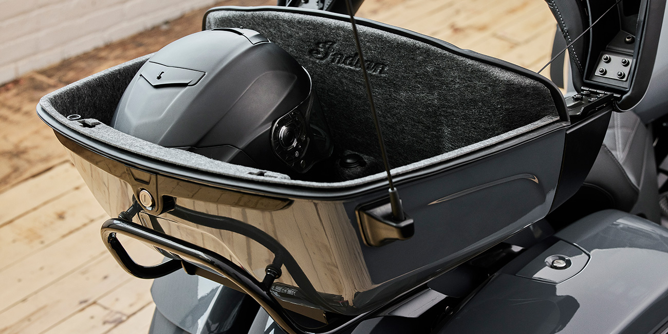Smart Lean Technology; Electronically Adjustable Rear Suspension Preload; Heated Seat; Integrated Driving Lights in Lower Fairing; Lower Fairing Storage; 7" touchscreen powered by Ride Command with Apple CarPlay integration; Selectable Ride Modes; Rear Cylinder Deactivation; Cruise Control; Tyre Pressure Monitoring; Remote-locking Hard Saddlebags & Trunk; 164 Litres of Storage; Highway Bars; Adjustable Passenger Floorboards; Brembo brakes; ABS; Keyless Ignition; Chassis Mounted Fairing; Power Windshield; Adjustable Fairing Air Flow Vents; Heated Grips; 200 Watt Audio System with AM/FM, Bluetooth, USB, Smartphone Compatible Input; 12V Charging Port